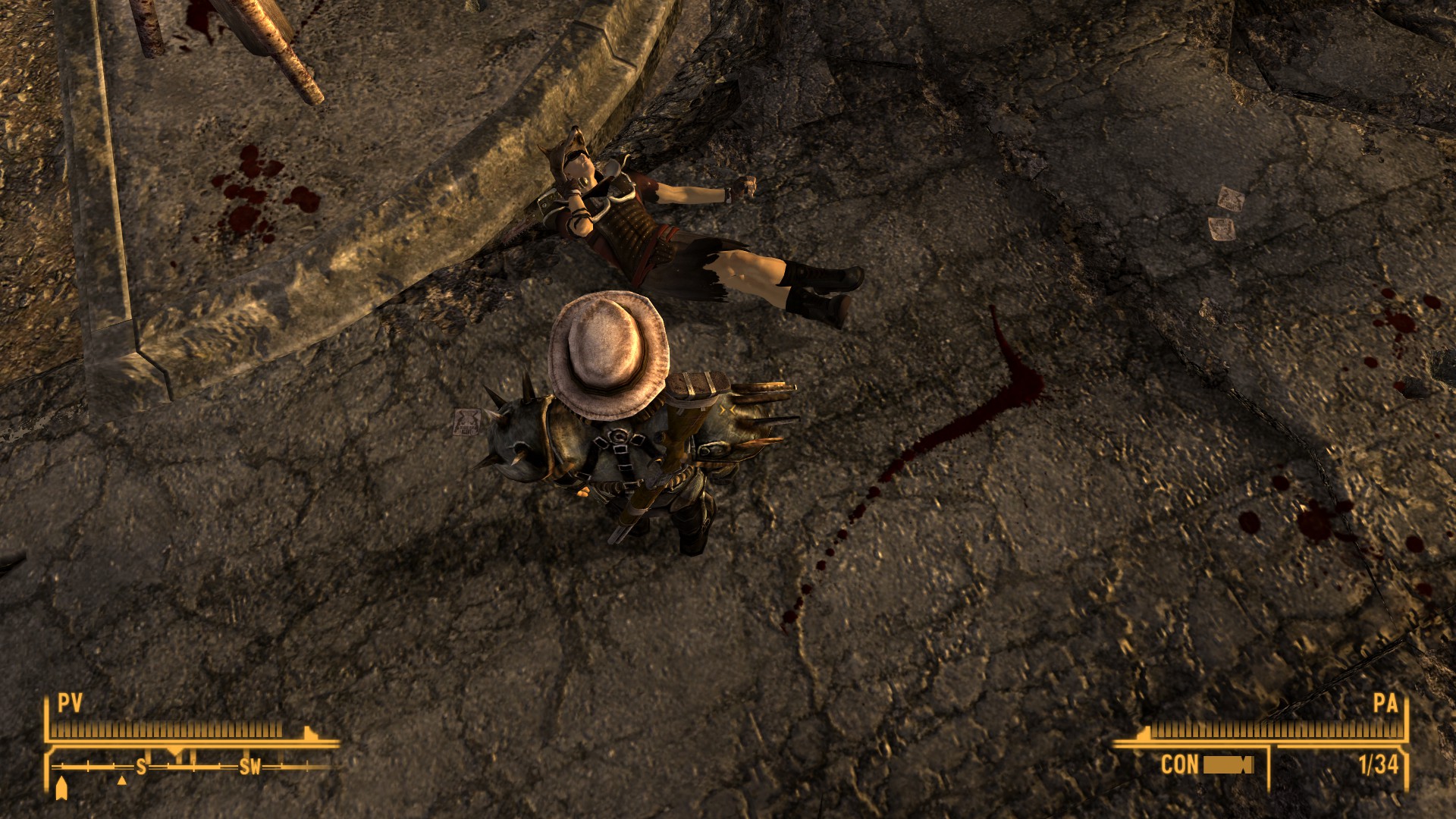 New Vegas es un juego bastante completo en mi opinión, puedes empezar sabiendo absolutamente nada, como yo, y no es mayor problema porque el juego está bien pulido en cuanto escala de dificultad. Igualmente puedes no tener idea de las mecánicas y aún así el juego sigue adelante, ya que hay demasiadas maneras de jugarlo y un montón de errores por cometer. En ese sentido, el juego es accesible y a prueba de despistados como uno, ya que las pistas y misiones casi siempre están bien demarcadas. A ratos se siente como una novela con mecánicas de RPG, y eso es parte del atractivo, como también la ambientación del juego y el permanente filtro amarillo.